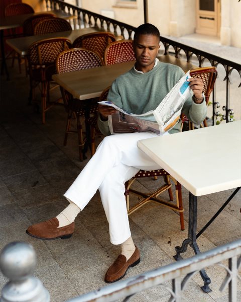 Goodyear welted construction Handcrafted in Portugal Premium water repellent suede from British Charles F. Stead Leather board heel stiffeners and cork filling